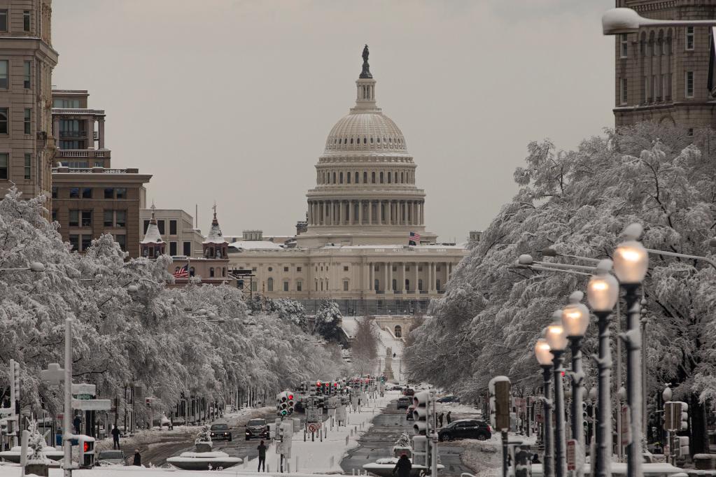 这是1月3日在美国首都华盛顿拍摄的雪后的国会大厦。新华社发(阿伦摄)