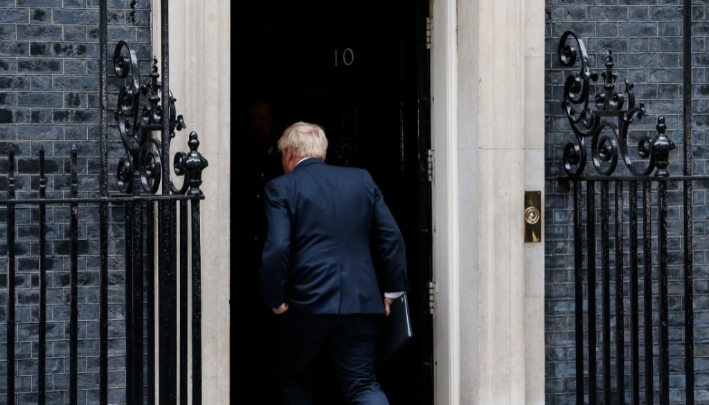 7月7日,英国首相鲍里斯·约翰逊在伦敦唐宁街10号门前发表讲话后返回室内。新华社记者韩岩摄