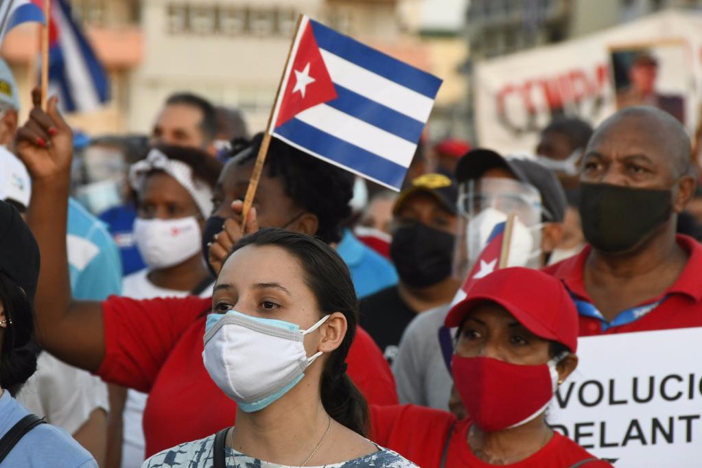 2021年7月17日,约10万民众在古巴首都哈瓦那参加爱国集会,抗议美国对古巴长期封锁、反对美国政府资助反古势力煽动骚乱。新华社发(华金·埃尔南德斯摄)