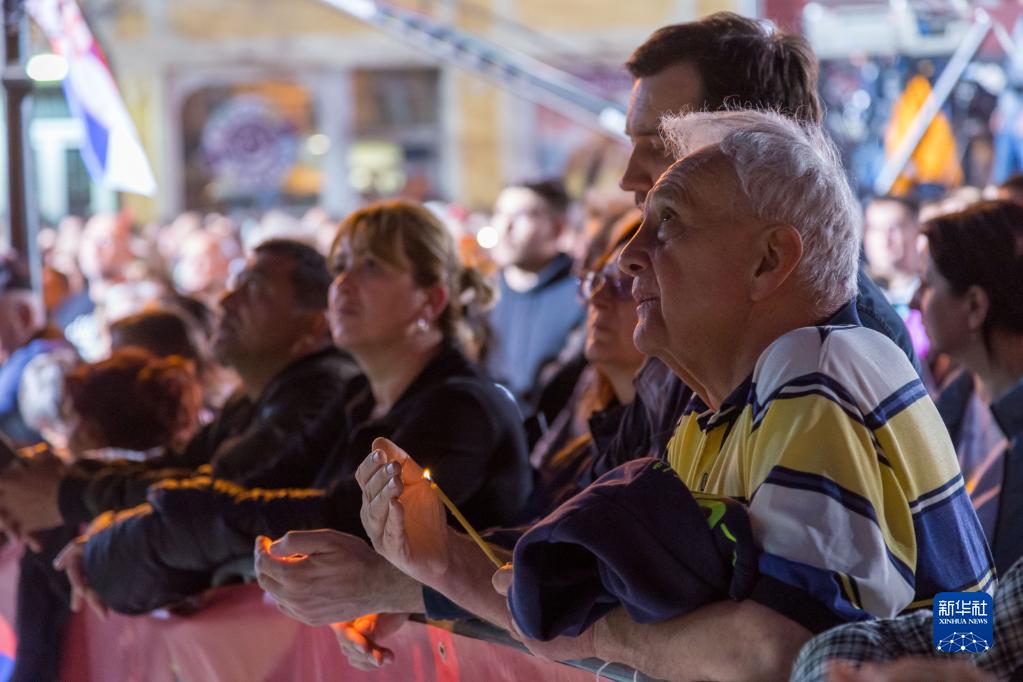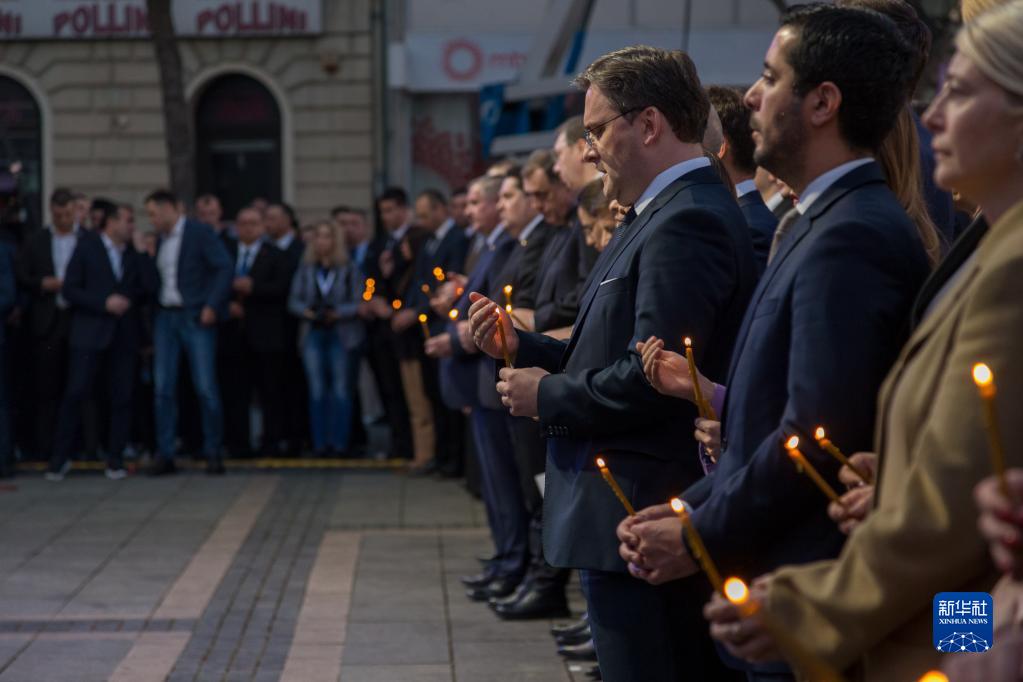 3月24日,在塞尔维亚北部城市松博尔,人们参加悼念北约轰炸南联盟遇难者仪式。新华社记者石中玉摄