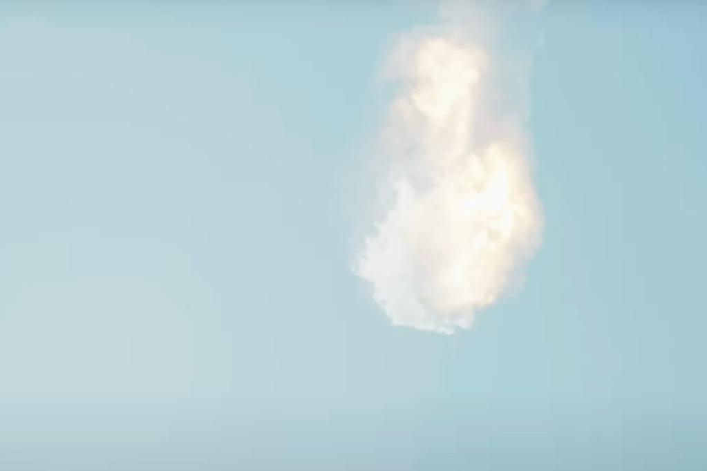 这张4月20日由美国太空探索技术公司提供的视频截取的图片显示,新一代重型运载火箭“星舟”以及飞船集成系统在位于得克萨斯州博卡奇卡的发射基地升空后发生爆炸。新华社发(美国太空探索技术公司供图)