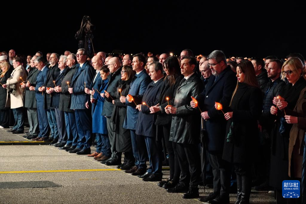 3月24日,在塞尔维亚首都贝尔格莱德,塞尔维亚政府官员出席纪念活动。新华社发(普雷德拉格·米洛萨夫列维奇摄)