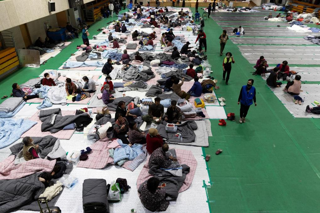 庆尚北道多地山火28日下午被基本扑灭后复燃,当地政府投入50架直升机、1400余名消防救援人员和600名士兵参与灭火。韩国中央灾难安全对策本部长高绮童30日宣布,庆尚南道和庆尚北道地区山火主要火情“已完全被扑灭”。 3月27日晚,受灾群众在韩国庆尚北道英阳郡一处避难所过夜。新华社发(全休相摄)