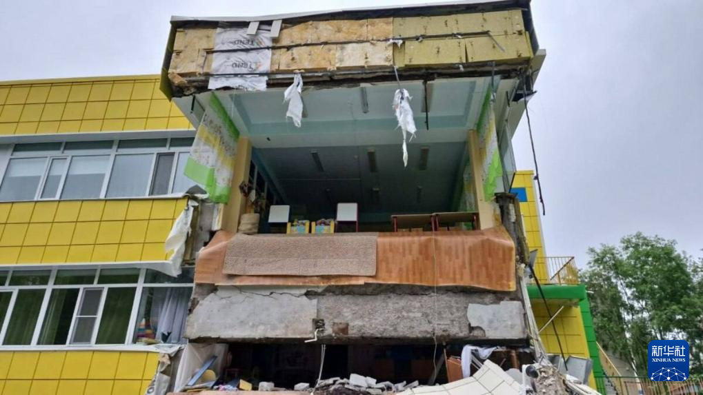 这是7月30日拍摄的俄罗斯堪察加彼得罗巴甫洛夫斯克市在地震中受损的幼儿园。新华社发(俄罗斯勘察加边疆区政府供图)