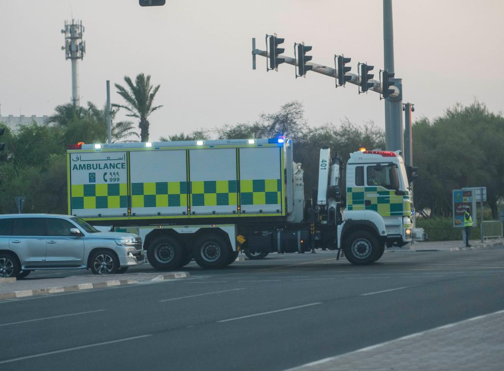 9月9日,在卡塔尔首都多哈,一辆急救车到达事发现场附近。新华社发(尼库摄)