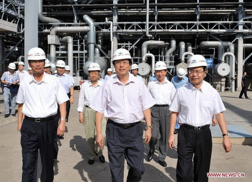 2008年9月2日,中共中央政治局委员、国务院副总理张德江在燕山石化公司考察生产与管理工作。新华社发