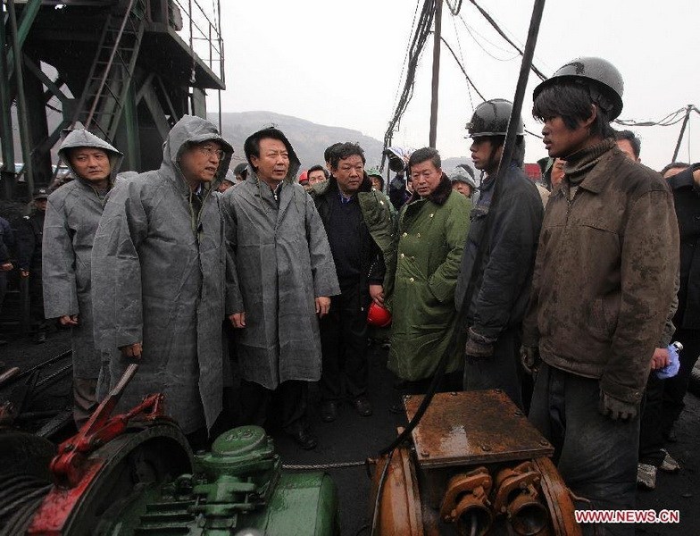 2010年3月29日,中共中央政治局委员、国务院副总理张德江亲临现场指导王家岭煤矿透水事故救援。新华社发