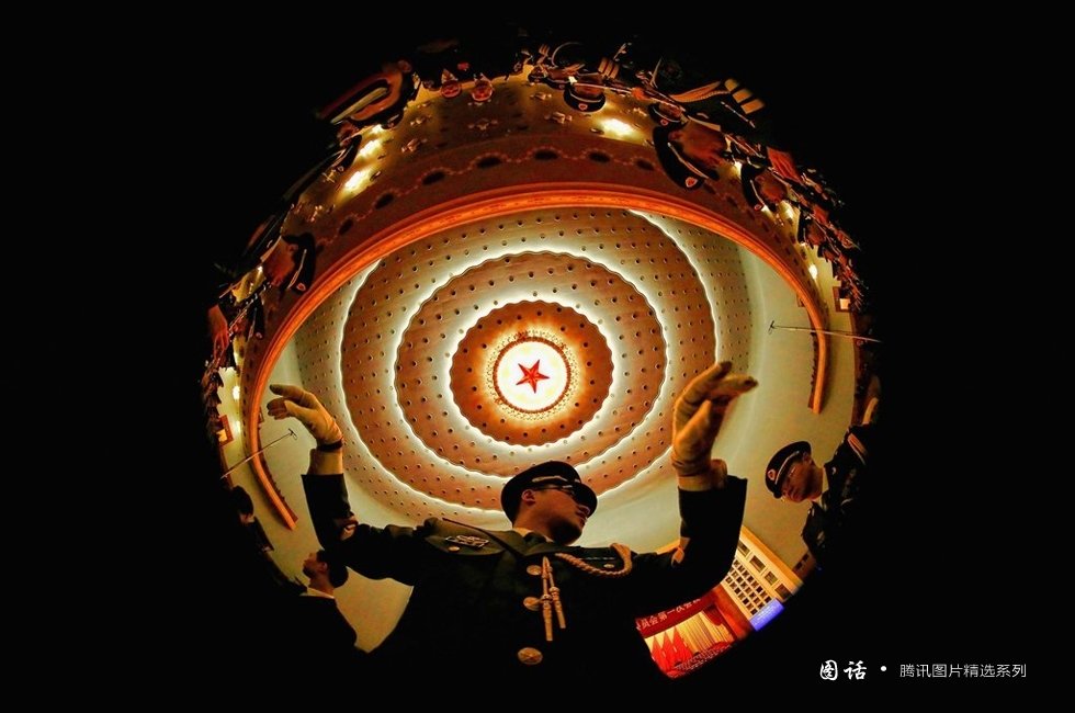 【9、奏乐仰拍角度赞】2013年3月3日,北京,全国政协十二届一次会议在京召开。鱼眼镜头拍摄。摄/Feng Li/Getty Images