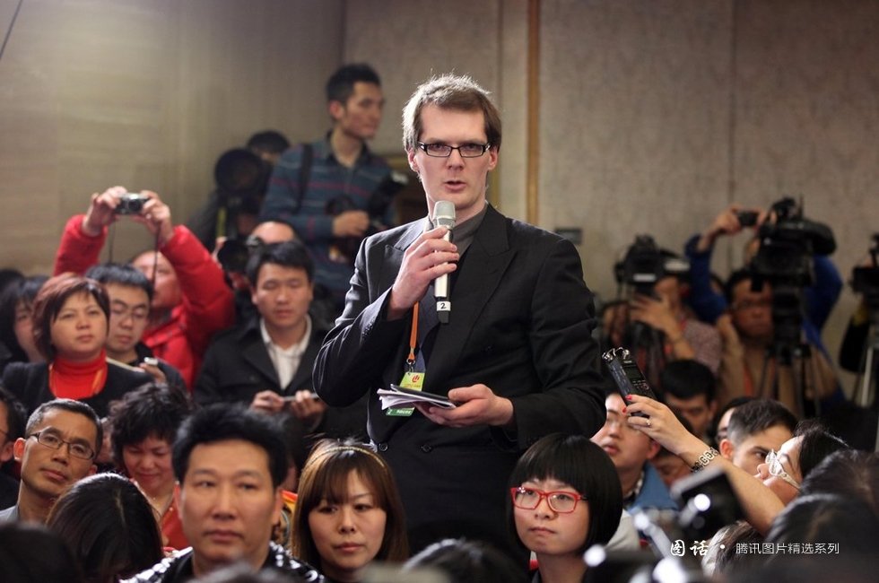 【10、外国面孔不能少】2013年3月2日,政协新闻发布会上提问的澳大利亚媒体记者。摄/田贺