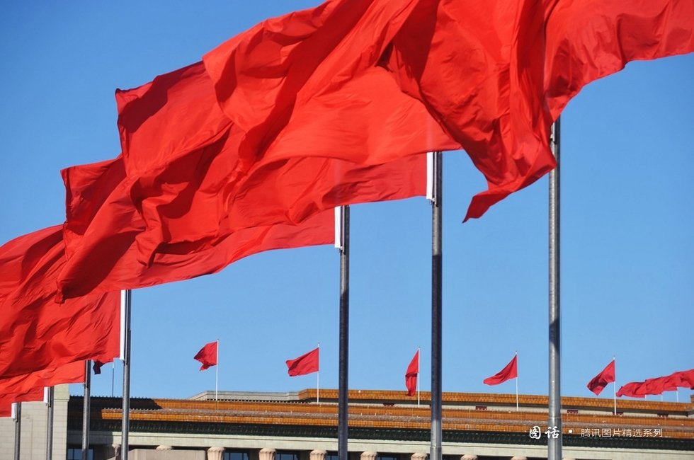 【12、红旗飘飘天蓝蓝】2013年3月4日,北京,天安门广场和人民大会堂红旗飘飘。摄/未央/东方IC