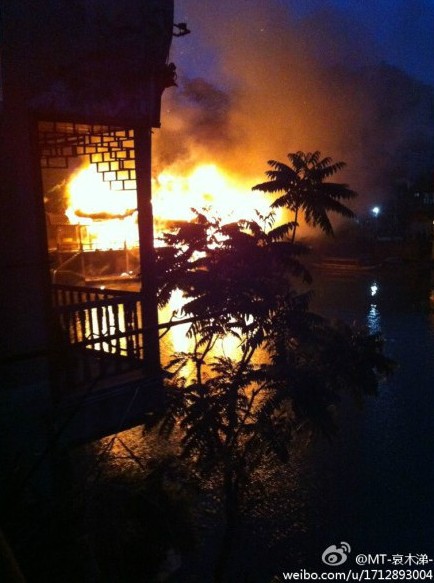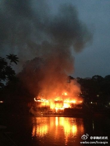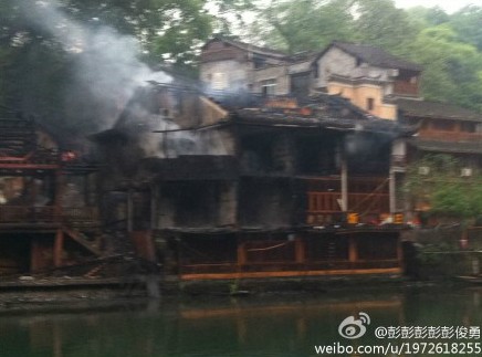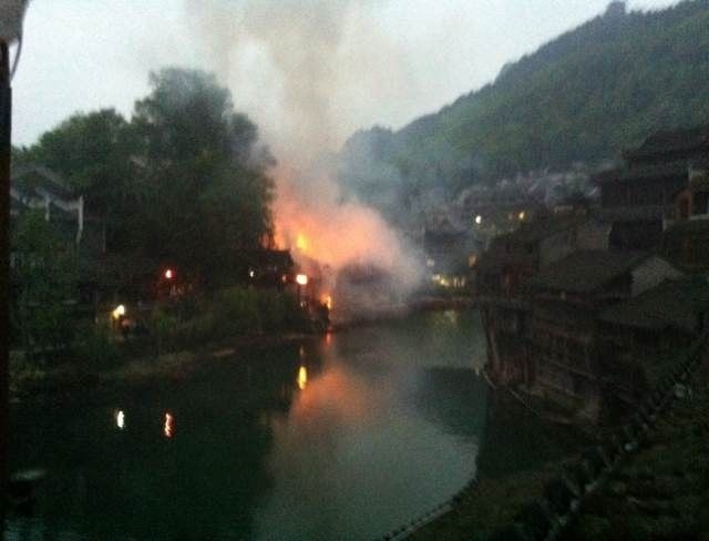 凤凰古城今晨发生火灾(组图)】据多位博友消息,凤凰古城今天清晨发生火灾。网友@MT-哀木涕- 称凌晨睡梦中听见噼里啪啦的声音夹杂着各种警报声,对面的酒吧着火了!好大的火,整个酒吧都烧掉了!把整个凤凰城照的通红!沿江全部都是人!@彭彭彭彭彭俊勇 称火势已基本控制。