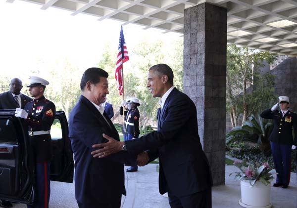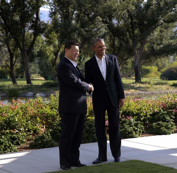 6月7日,中国国家主席习近平在美国加利福尼亚州安纳伯格庄园同美国总统奥巴马举行中美元首会晤。 新华社记者兰红光摄