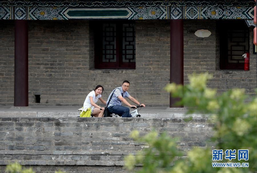 7月10日,游客在西安古城墙上参观游览。当日,西安城墙景区发布消息,自2013年7月起,每月15日为西安城墙免费开放日。西安市城区及郊县地区市民可持西安市有效身份证在西安城墙景区西门、北门售票处免费领取门票。西安城墙景区每月将限额发放免费门票5000张。新华社记者李一博摄