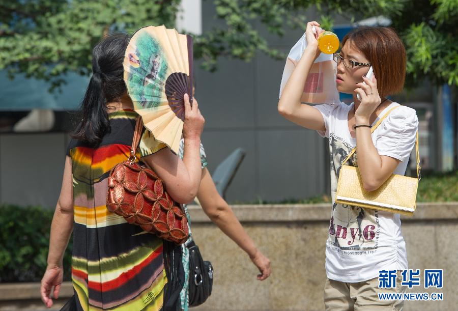 7月11日,在重庆市江北区观音桥步行街,市民用各种用品遮挡强烈的阳光。当日,重庆市气象局再发高温橙色预警信号,部分地区气温飙升至37℃。为应对高温天气,重庆市部分工地减少劳动者户外工作时间并向户外工作者发放降温避暑药品。新华社记者 陈诚 摄