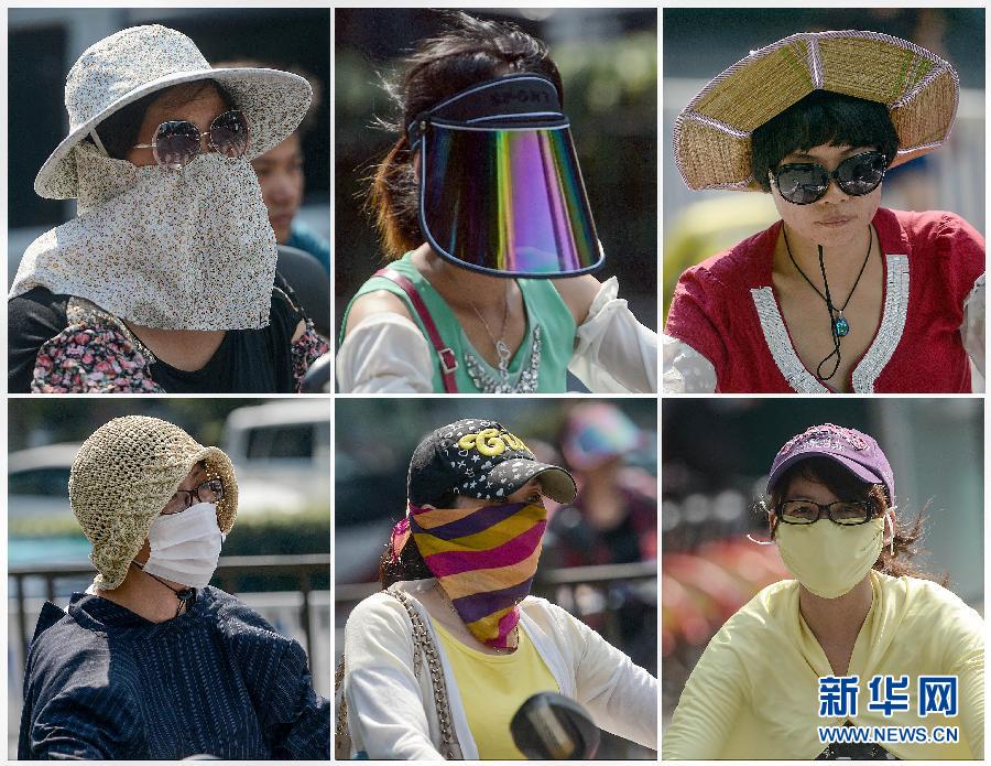 7月11日,杭州市区不同骑车市民的防暑“装备”(拼版照片)。近日,浙江省多地持续出现高温天气。据浙江省气象台介绍,11日,全省大部分地区最高气温达37至40摄氏度。杭州富阳、宁波奉化最高气温均超过40摄氏度,分别为41.1和40.4摄氏度。新华社记者 韩传号 摄
