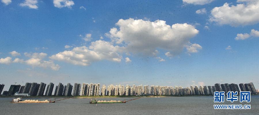 7月8日,长沙湘江主航道映衬在蓝天白云下。当日,湖南省长沙市天气晴朗,出现天高云淡的美景。 新华社记者 龙弘涛 摄