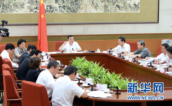7月16日,中共中央政治局常委、国务院总理李克强主持召开经济形势座谈会,听取专家和企业负责人的看法和建议。新华社记者刘建生摄