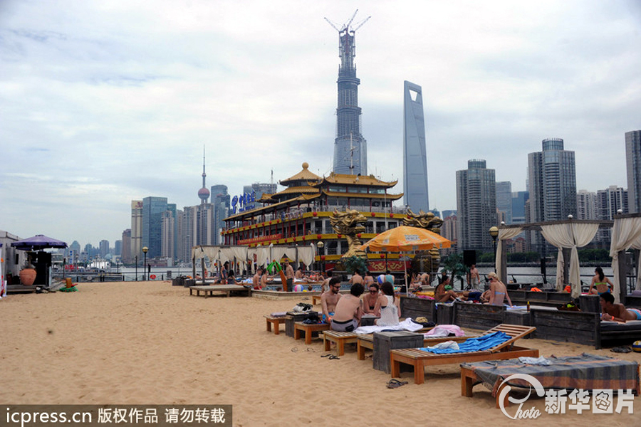 上海江畔感受阳光沙滩 三伏天尽享水中凉爽(图)