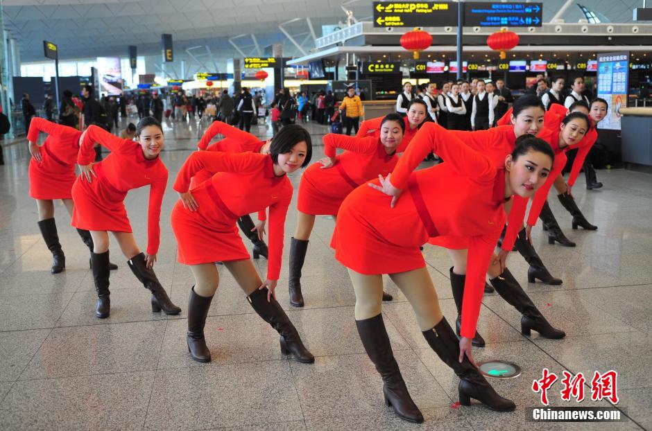 沈阳机场火辣“快闪”贺新春 红裙艳舞热力十足