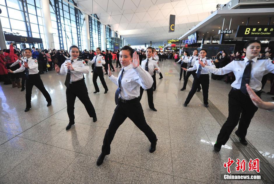 沈阳机场火辣“快闪”贺新春 红裙艳舞热力十足