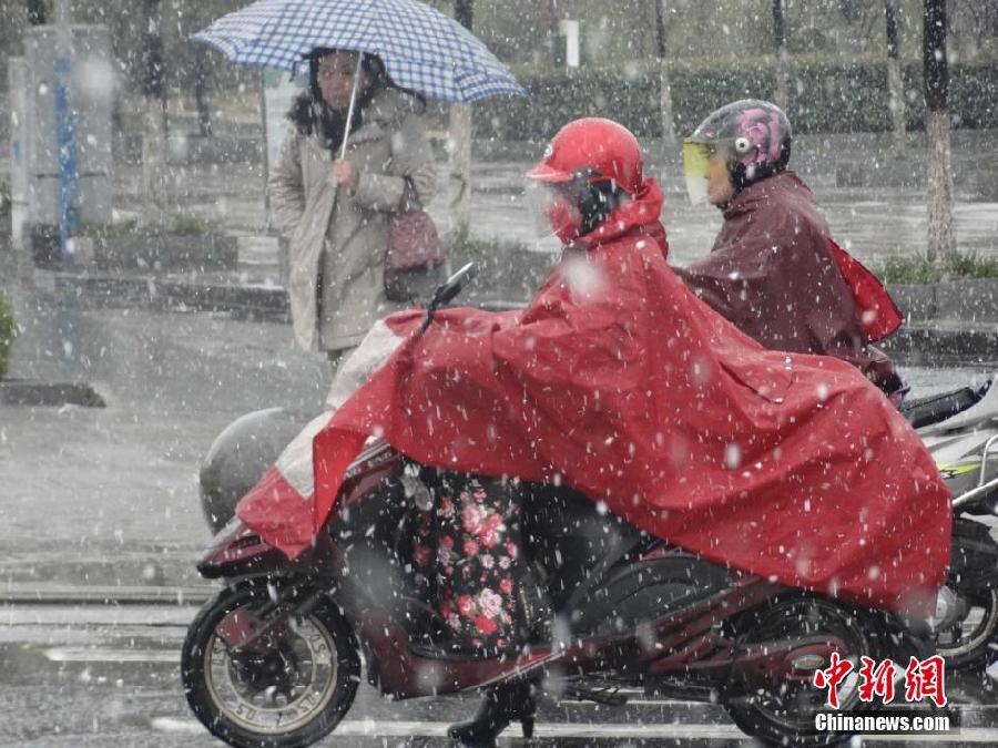 18日,江西多地降下马年新春以来的第三场雪。当日中午,江西省气象台发布暴雪蓝色预警信号,该省南昌、九江、萍乡、宜春、新余等多个地市出现降雪,部分山区有道路结冰。 邹海斌 摄