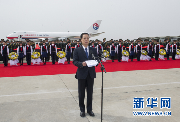 张高丽出席在韩中国人民志愿军烈士遗骸回国迎接仪式并讲话