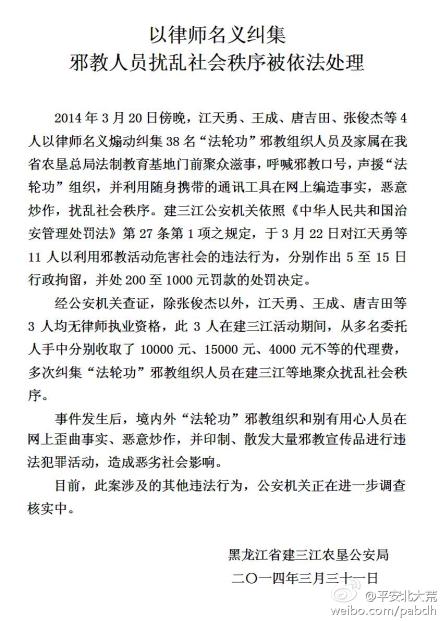 公安依法处理利用邪教活动扰乱社会秩序人员