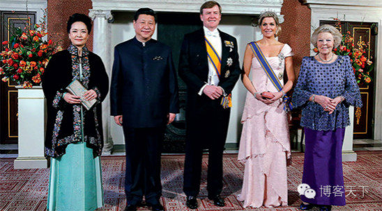 在荷兰国王和王后的欢迎晚宴上,习近平选择了一套立领礼服,有的新闻报道认为这是一套"立领中山装",其实这套衣服和中山装是不同的衣服。
