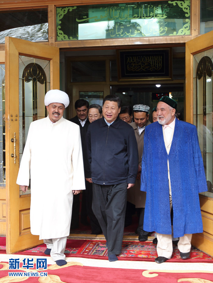 30日上午9时30分许,拥有近120年历史的乌鲁木齐洋行清真寺,迎来了一位特殊客人:总书记按照伊斯兰教的礼仪,脱鞋走进大殿。