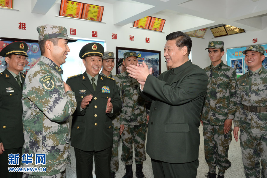 在同驻疆部队和武警部队负责同志交谈时,总书记强调,驻疆部队要贯彻中央部署要求,把反恐斗争提到战略高度来抓。要先发制敌,善于打主动仗,健全军警兵民联合反恐维稳机制,加大针对性演训力度,提高预防预警、快速反应、综合应对能力。