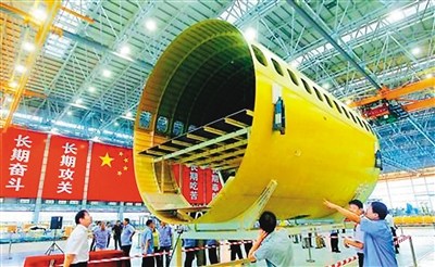 5月15日,C919大型客机首架机前机身部段在江西南昌成功下线,这是下线的首个大部段。“C919大型客机前机身大部段成功下线令人鼓舞。”中航工业集团公司副总经理耿汝光在现场指导下线时如是说。C919大型客机前机身大部段包括前段客舱、前货舱和再循环风扇舱,包含零件1600多项,涉及工装1900多项。值得一提的是该部段在国内民机上首次应用世界先进的第三代铝锂合金材料。“采用这种材料后,这个部段外壁非常之薄,它既保证我们国家的大飞机未来在身材轻盈,又拥有非常可靠的外部结构。”C919项目一个工程负责人在接受媒体采访时表示。