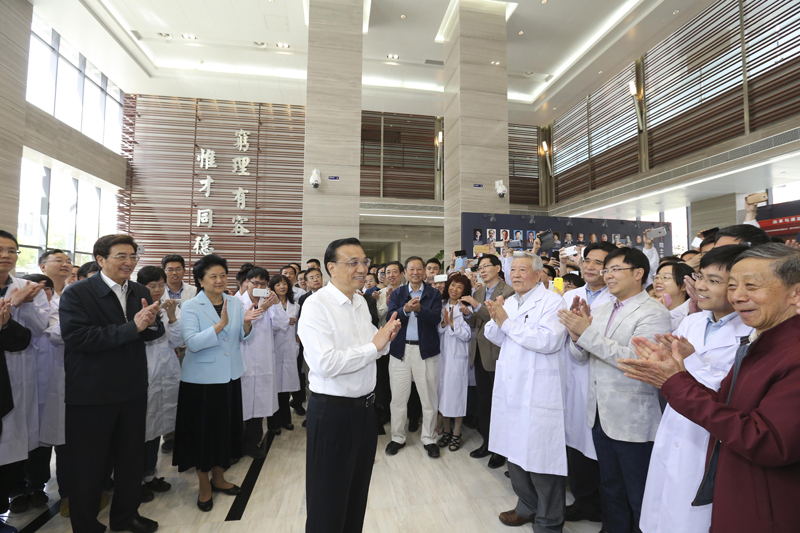 李克强来到中科院物理所,听取基础研究和原创成果介绍,他走进超导实验室和电子显微镜实验室,对相关领域研发进展和设备自主研制情况表示肯定。李克强说,基础研究的深度和广度,决定着国家原始创新动力和活力,只有夯实这个“地基”,才能矗起国家核心竞争力的“大厦”。推动我国产业发展向中高端水平迈进,必须有基础研究支撑。要加大对基础研究的支持力度,攻克一批重大关键技术难题,以更多高水平原创性成果推动应用研究和产业升级。