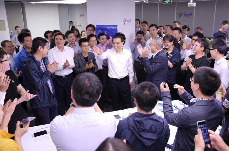 李克强来到中关村创业大街创业会客厅,对他们为小微企业和创业者提供法律、金融、人力资源、知识产权保护、创业场所等便捷优惠服务表示赞许。李克强说,当前中国经济发展正处于新旧动力转换的关键时期,要保持经济运行在合理区间,使新的增长点破茧而出,简政放权、放管结合、强化服务改革必须跑出加速度,这是政府的应尽职责,我们不仅要简政有力,把该放的放到位,更要在监管和服务上下功夫,持续为大众创业、万众创新清障搭台,释放中国经济的无限活力。
