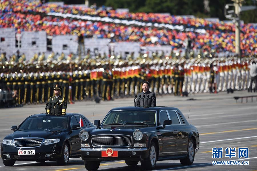 9月3日,纪念中国人民抗日战争暨世界反法西斯战争胜利70周年大会在北京天安门广场隆重举行。这是中共中央总书记、国家主席、中央军委主席习近平检阅受阅部队。新华社记者李学仁摄 |