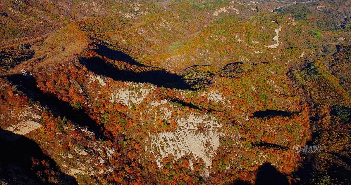 10月13日,航拍北京喇叭沟门秋景。喇叭沟门是北京唯一一处原始森林自然生态景区,位于北京怀柔县喇叭沟门满族乡境内,总面积180平方公里。这里森林茂密,而且由于景区山地海拔落差大、气候垂直变化,区内各种木本和草本的野花不但品种多,而且花期格外的长。腾讯拍客 易非 供图