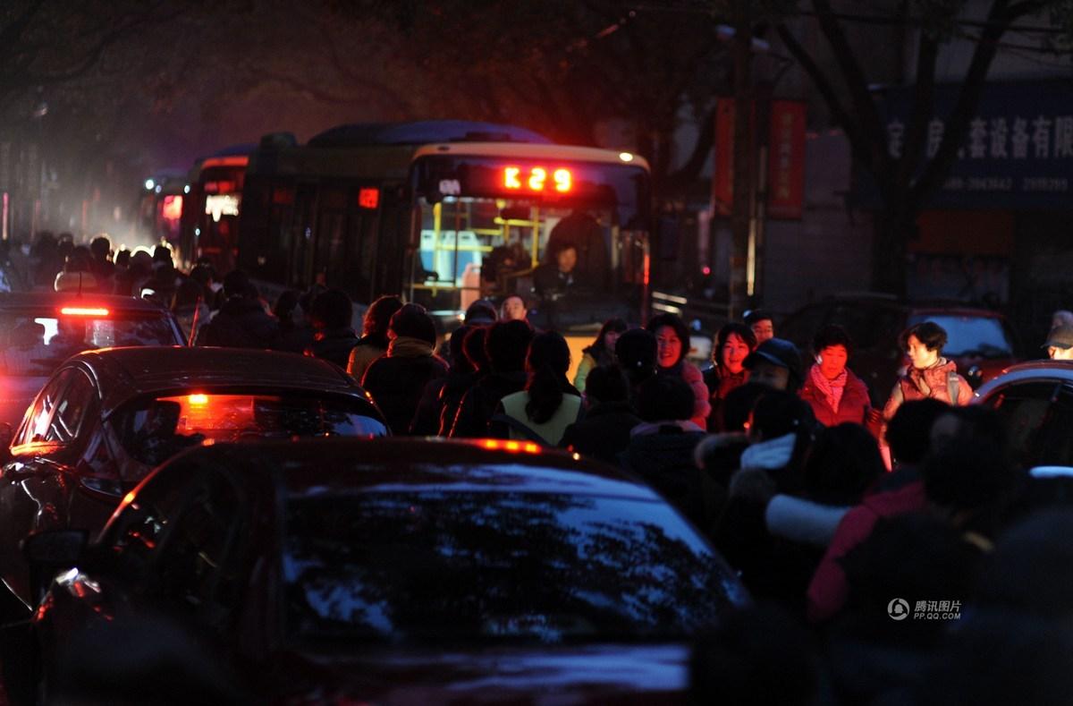天还未亮,浙江省舟山市定海区昌国路,领腊八粥的队伍和道路两旁停靠的私家车让公交车寸步难行。五里红/东方IC