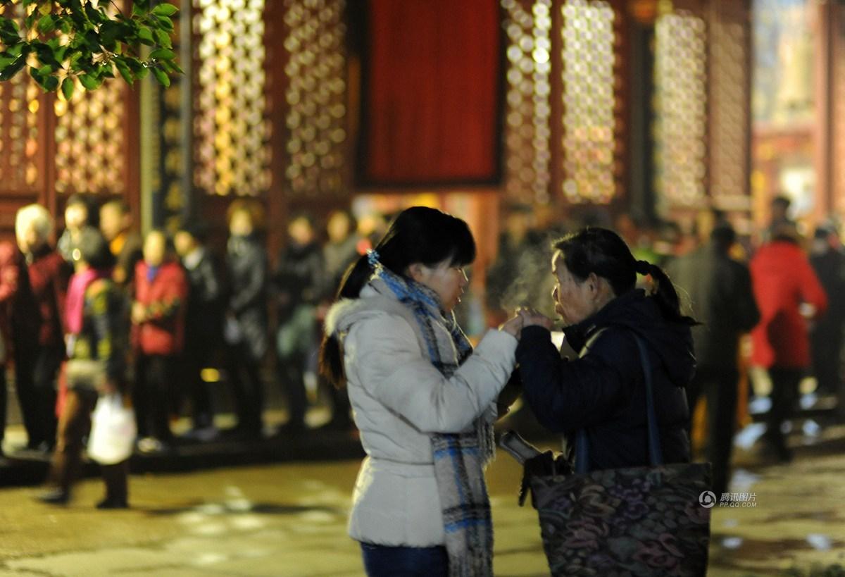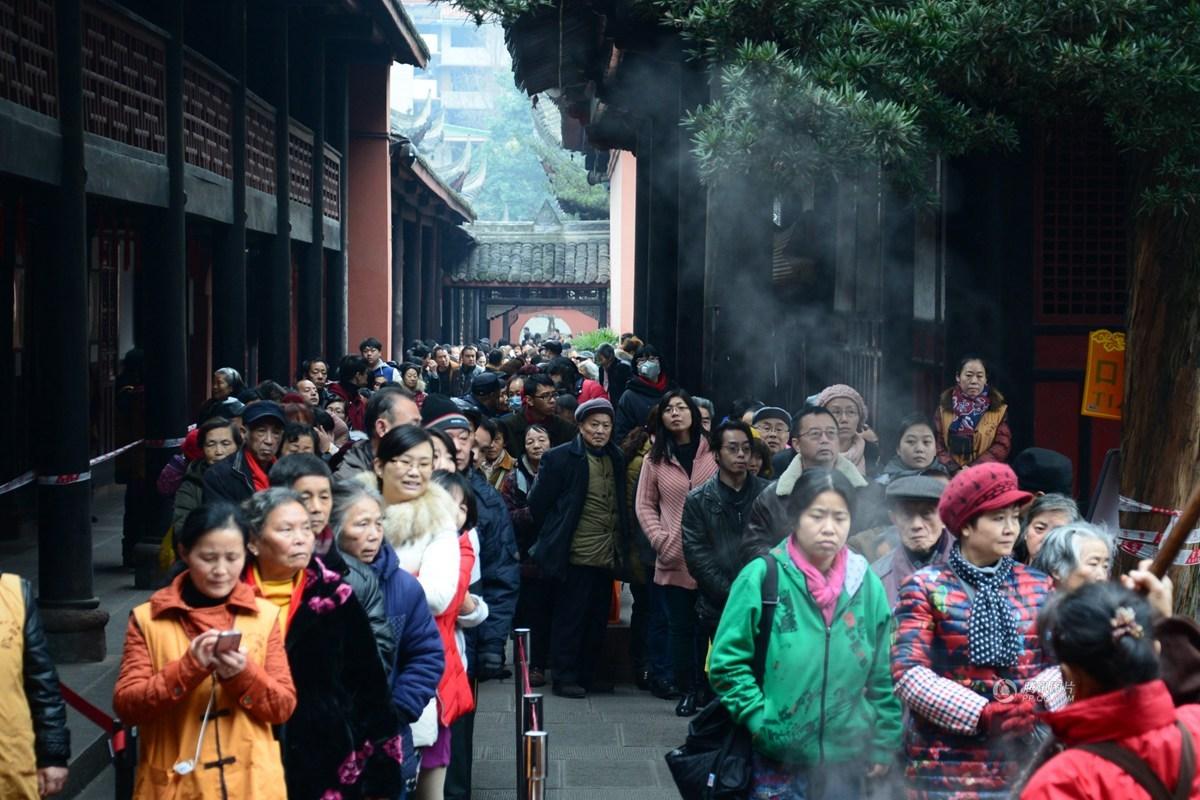 四川省成都市,上万成都市民和游客前往文殊院“腊八粥”发放点排队领取品尝免费的腊八粥。廖力/东方IC