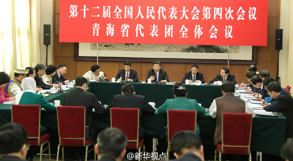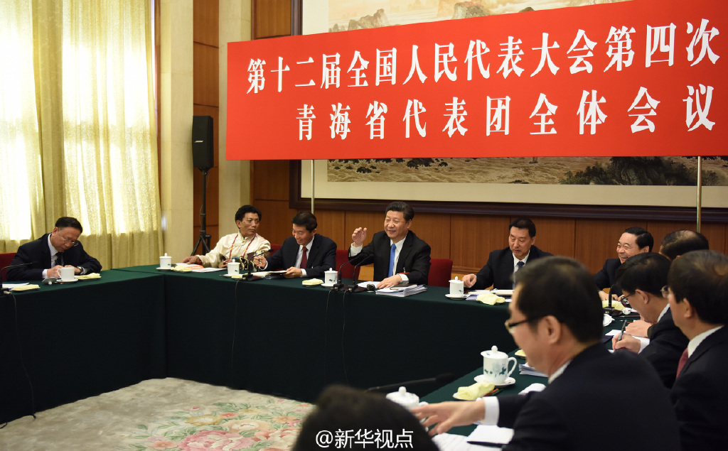 新华网北京3月10日电 3月10日上午,中共中央总书记、国家主席、中央军委主席习近平来到十二届全国人大四次会议青海代表团参加审议。