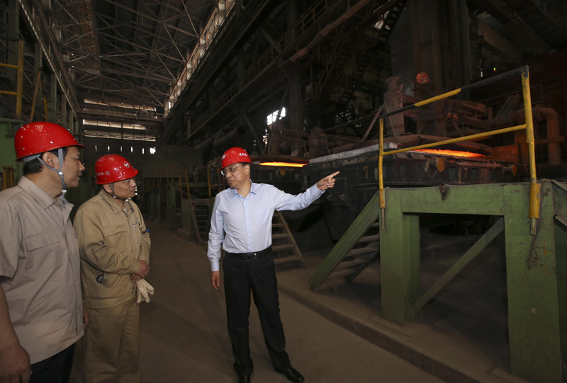 在武汉钢铁集团公司,李克强详细了解企业生产经营情况,并与公司管理层和工人代表商议企业化解过剩产能和脱困发展对策。他说,化解过剩产能是供给侧结构性改革的重要任务,要坚决减去低效无效落后产能。这个月国务院有关部门已经与各地签订了新一轮化解过剩钢铁、煤炭产能责任书,要切实落实到位。探索多种方式有效降低企业杠杆率,减轻债务负担。特别是各级党委和政府要帮助企业做好富余人员安置工作,力争做到转岗不下岗、转业不失业,确有困难的由社保兜底。企业要发挥主体作用,敢于先行先试,顶住转型阵痛,赢得新的发展。