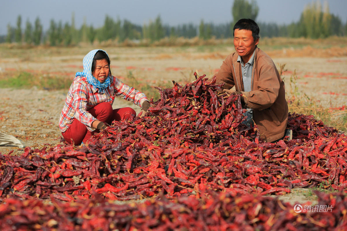 新疆农民晒辣椒 大地染成一片红(组图)