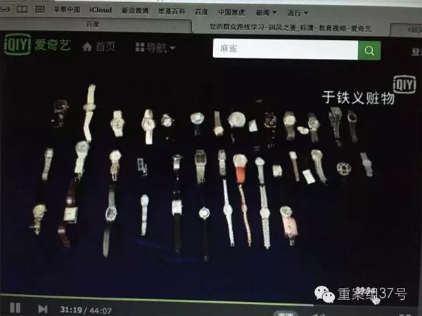 ▲于铁义家中查出的世界名表和珠宝首饰。 《四风之害》专题片截图