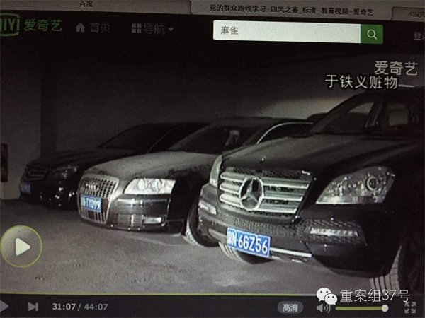 ▲于铁义收藏的高档轿车。 《四风之害》专题片截图