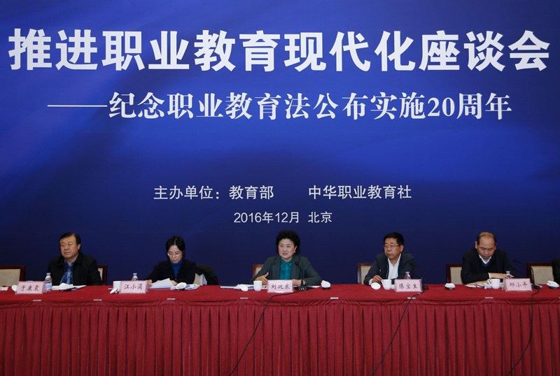 12月2日,推进职业教育现代化座谈会在北京召开。中共中央政治局委员、国务院副总理刘延东出席会议并讲话。新华社记者 燕雁 摄