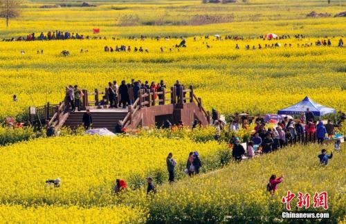 4月7日清明小长假最后一天,江苏兴化千垛景区赏花观景的人流如潮。 汤德宏 摄
