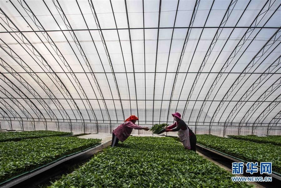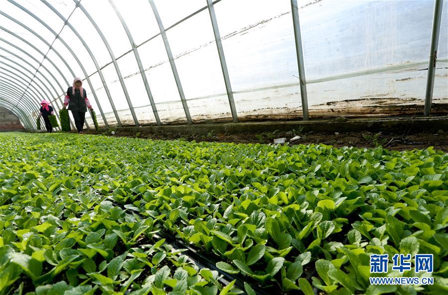 2月22日,甘肃张掖甘州区党寨镇雷寨村菜农在温室大棚里忙碌。 新华社发(王将 摄)