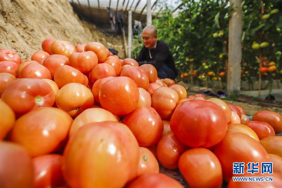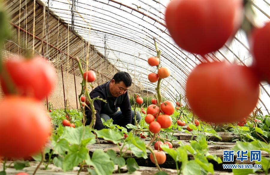2月22日,河北唐山遵化市堡子店镇武庄子村农民在大棚里收获西红柿。 新华社发(刘满仓 摄)