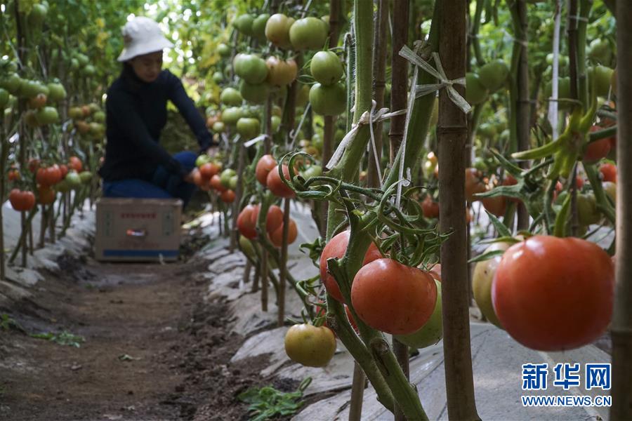 2月22日,河北唐山遵化市堡子店镇武庄子村农民在大棚里采摘西红柿。 新华社发(刘满仓 摄)