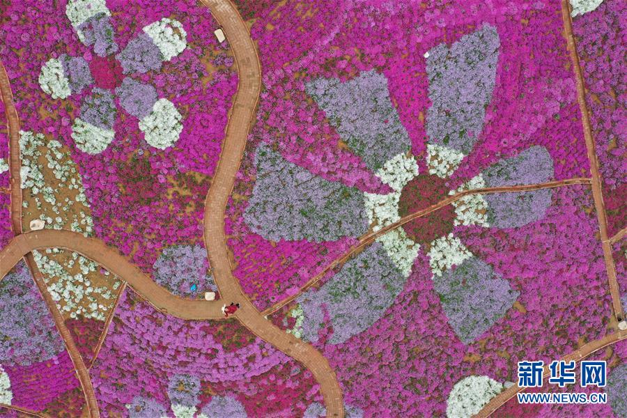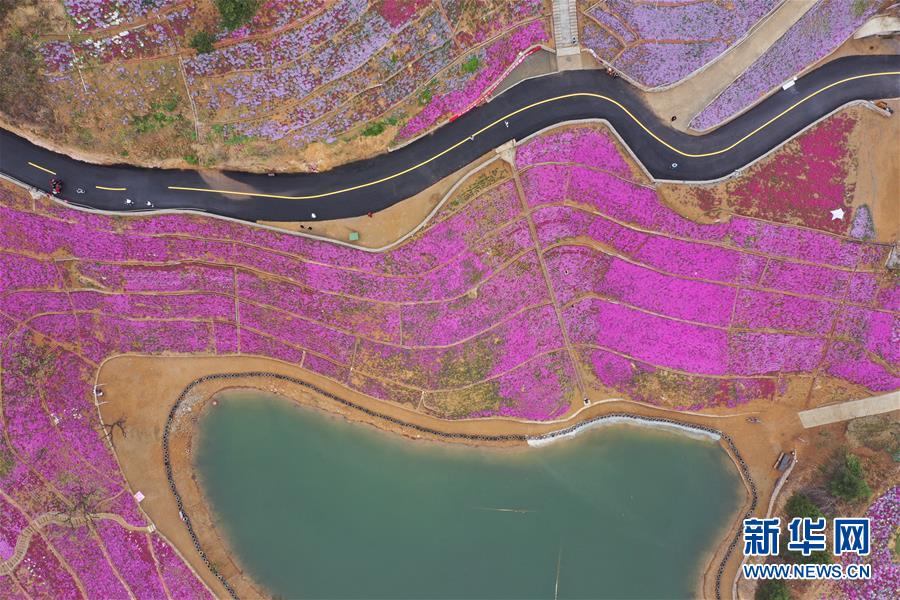 4月24日无人机拍摄的雨花谷景区。近日,河北省迁西县雨花谷景区的芝樱花盛开,吸引游客前来观赏。 新华社记者 杨世尧 摄