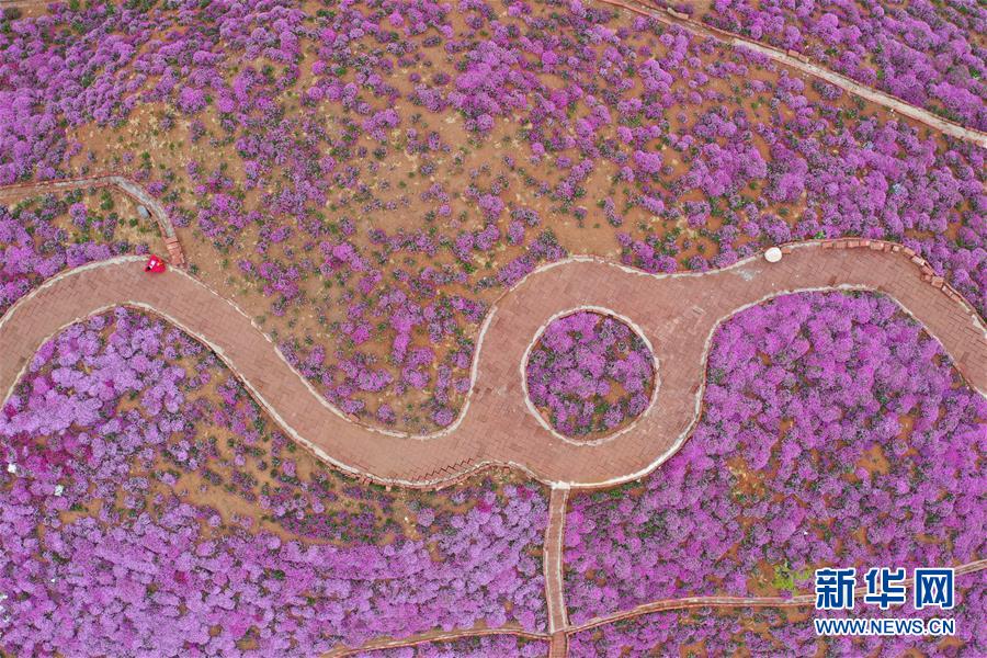 4月24日无人机拍摄的雨花谷景区。近日,河北省迁西县雨花谷景区的芝樱花盛开,吸引游客前来观赏。 新华社记者 杨世尧 摄 |