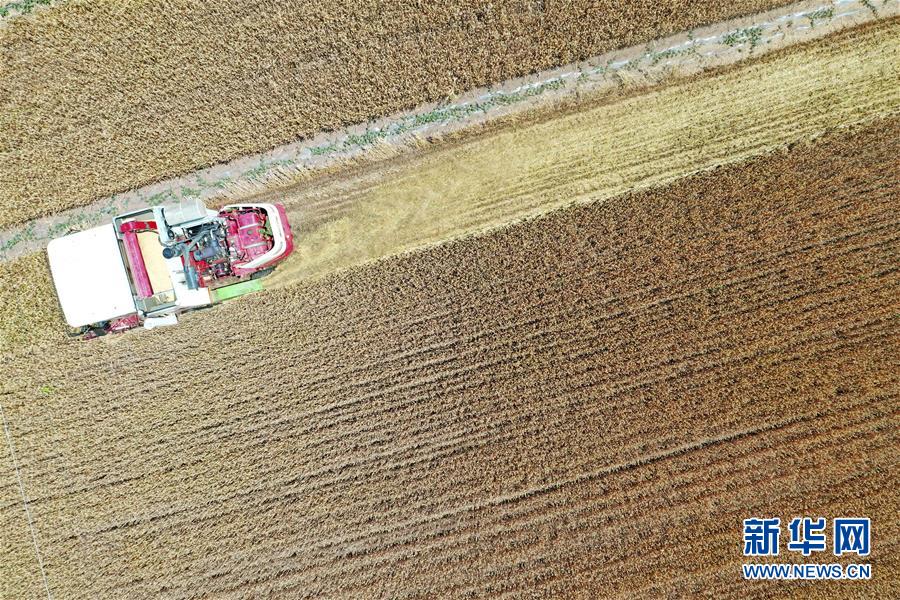 6月2日,在山东省枣庄市台儿庄区张山子镇张庄村,村民在收获小麦。 新华社发(张严新 摄)